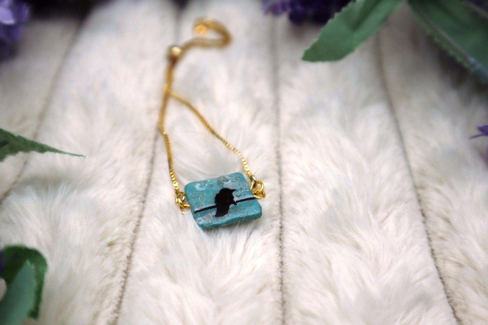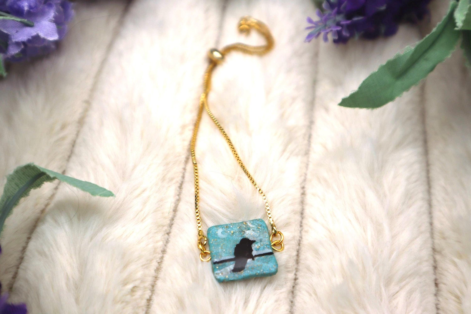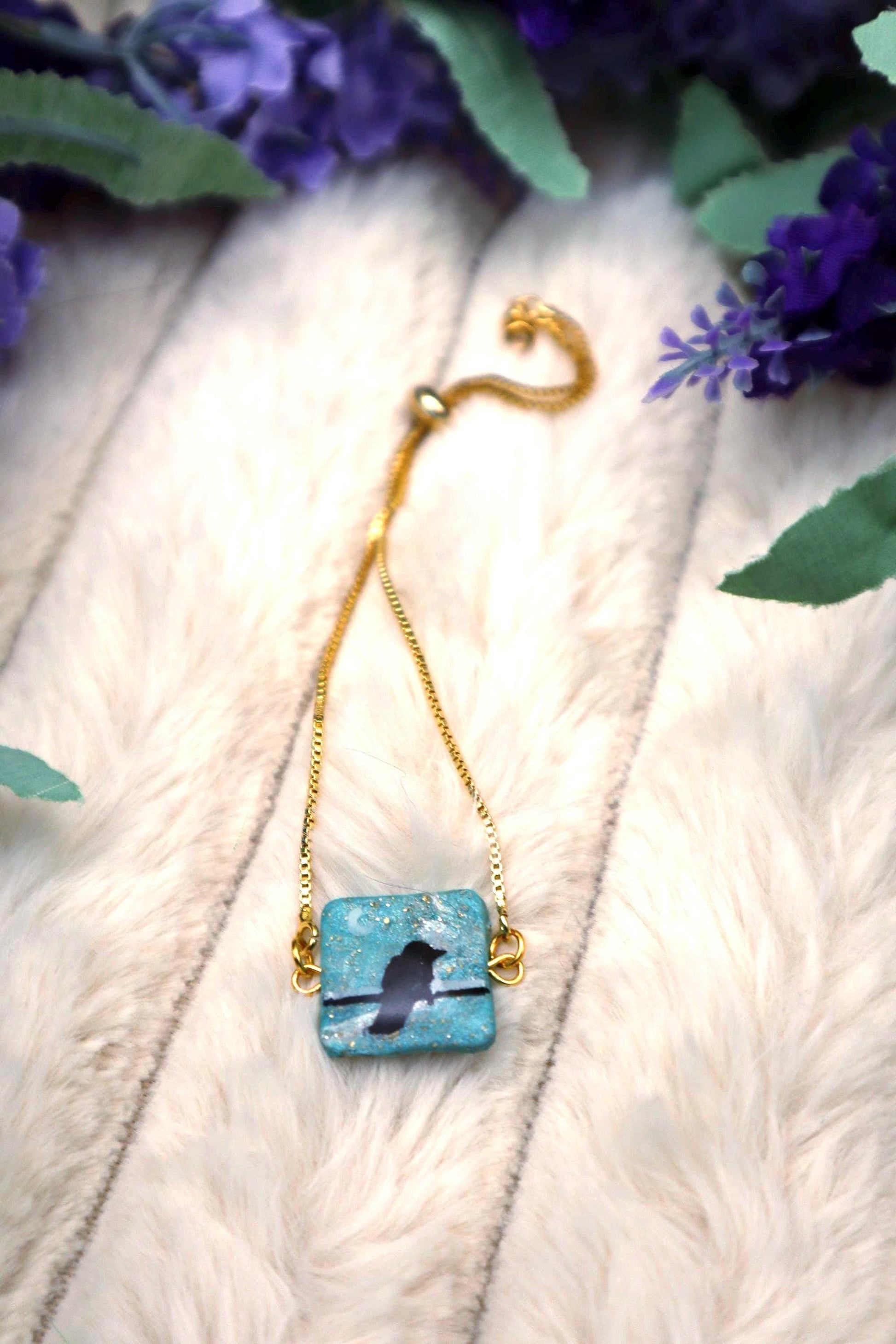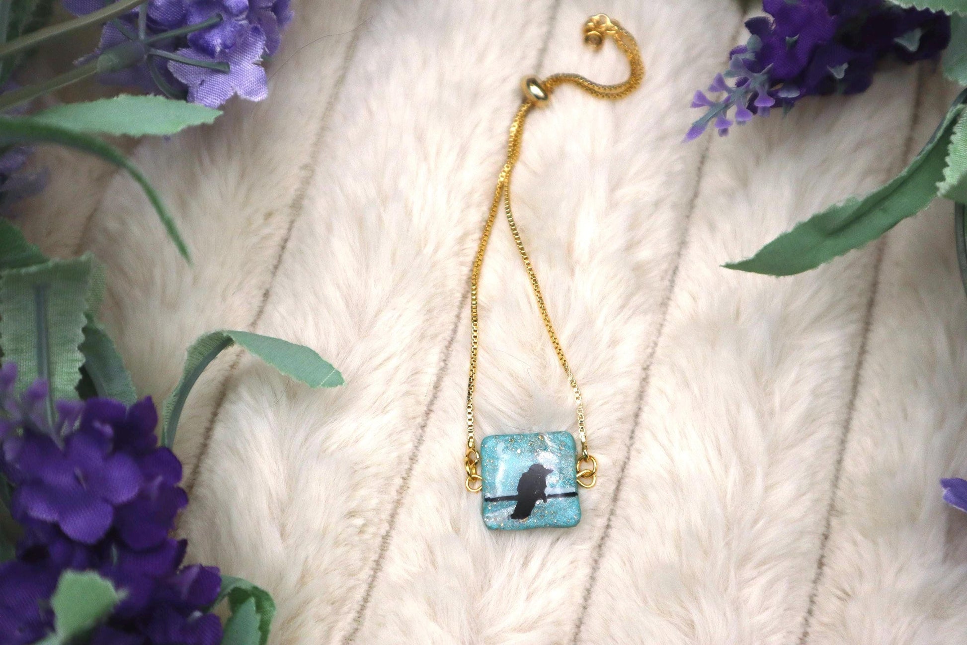 Adjustable Raven Pendant Bracelet | Gold plated Stainless Steel Adjustable Chain