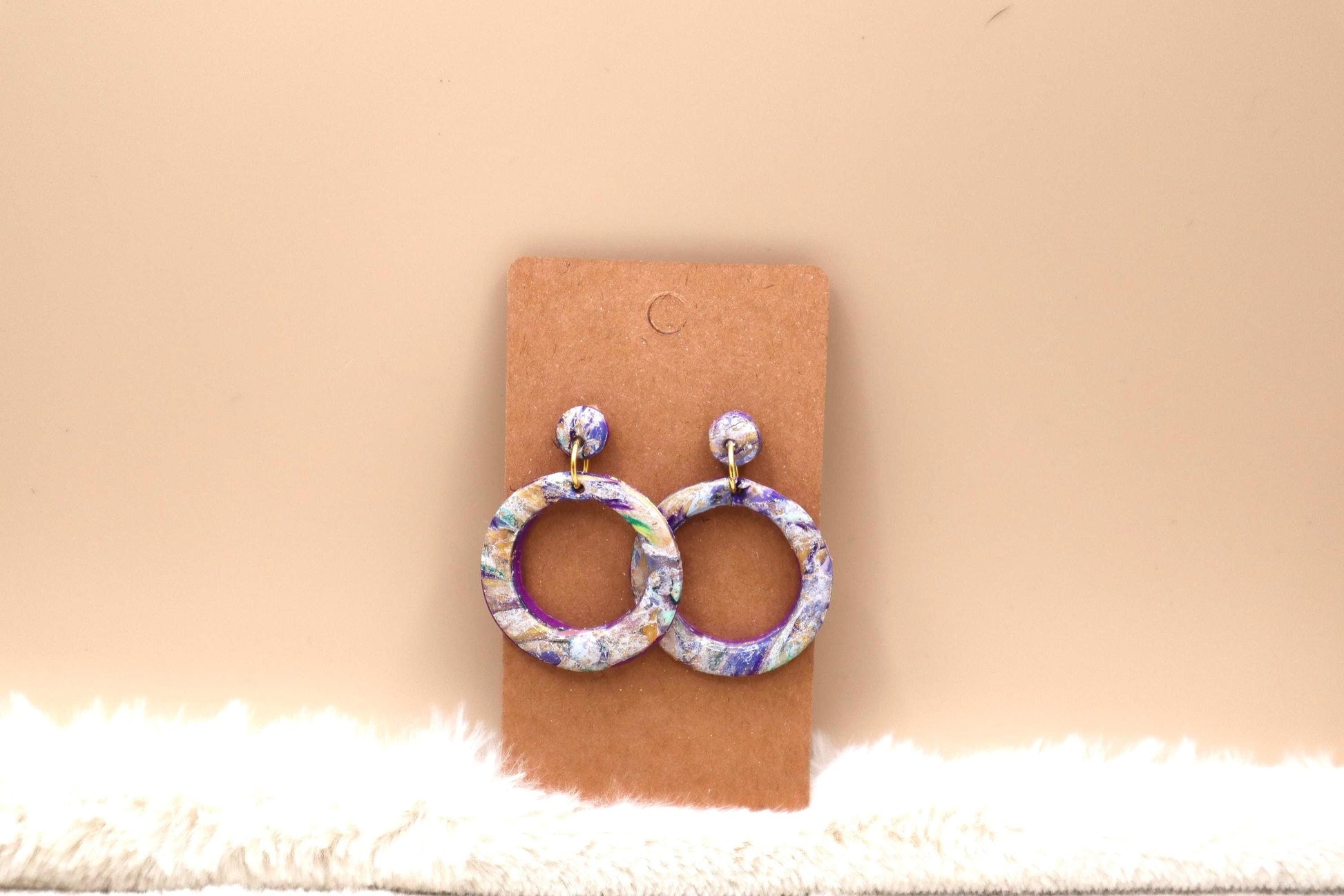 Circular Ring Purple Marble Dangle Earrings
