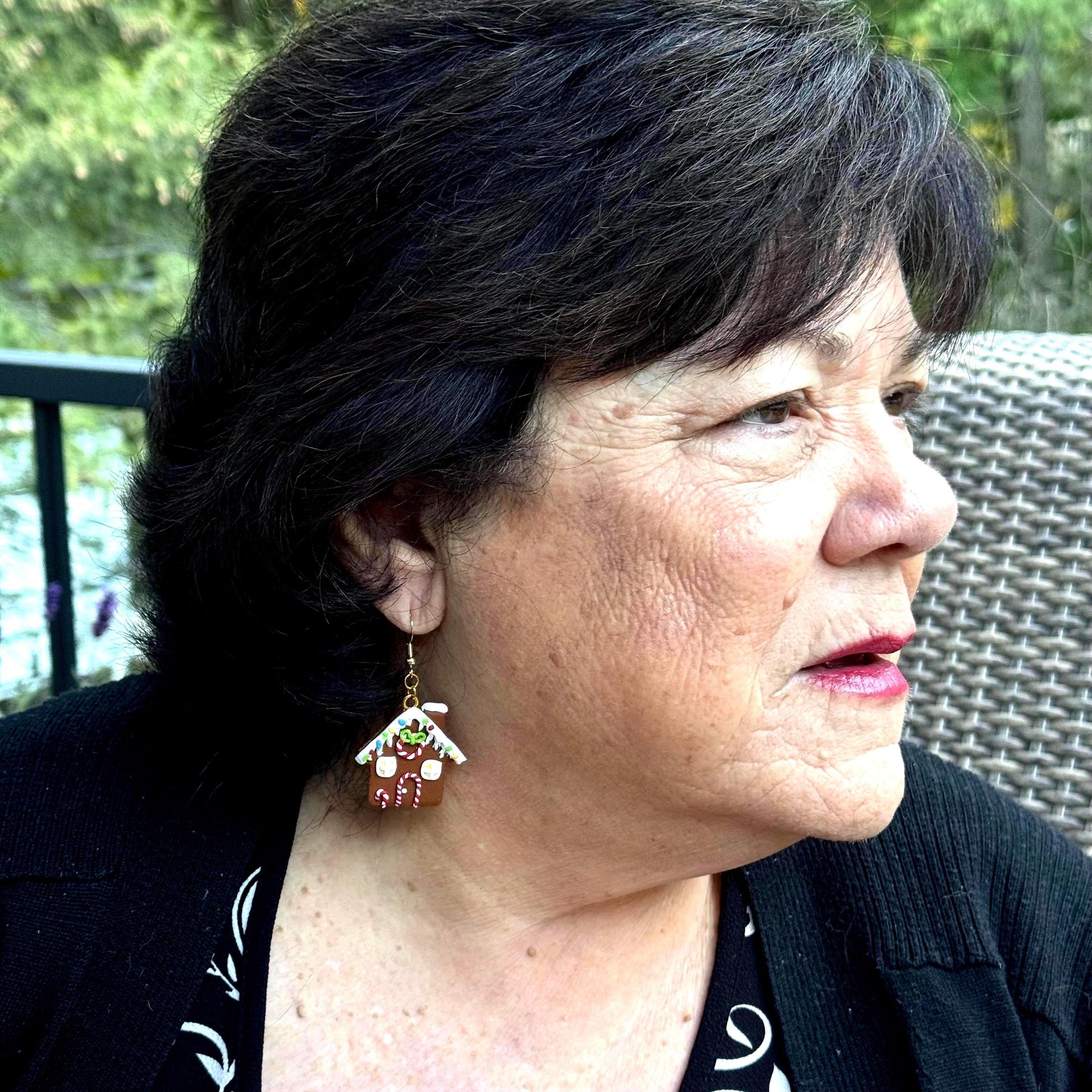 Each earring features a handcrafted mini gingerbread house—complete with two charming windows, snowy rooftops, and tiny candy-like accents. These little homes are so cute, you’ll want to live in them (but please don’t try, trust us—it’s a tight squeeze).