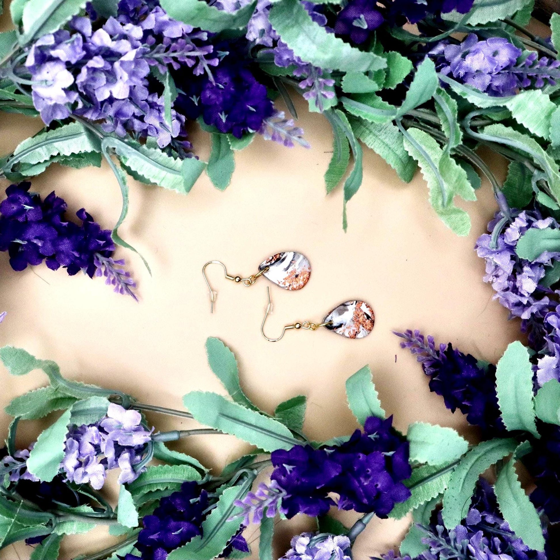 Japanese Cherry Blossom Inspired Marble Teardrop Dangle Earrings